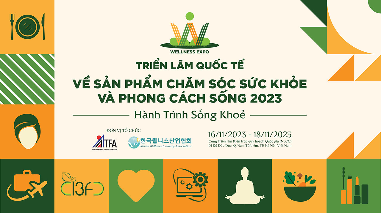 Triển lãm Quốc tế về Sản phẩm Chăm sóc sức khỏe và Phong cách sống năm 2023 tại Việt Nam (Wellness Expo 2023) sẽ được tổ chức tại Cung Triển lãm Kiến trúc Quy hoạch Xây dựng Quốc gia (NECC), 01 Đỗ Đức Dục, Q. Nam Từ Liêm, TP. Hà Nội từ ngày 16 đến 18/11/2023. Triển lãm có sự kết hợp đan xen của các yếu tố vận động, giải trí và kết nối doanh nghiệp với người tiêu dùng, bao gồm các không gian trưng bày quy tụ các sản phẩm, dịch vụ đến từ nhiều nhãn hàng danh tiếng về chăm sóc sức khỏe và phong cách sống tại Việt Nam và Hàn Quốc, các hoạt động thể chất cộng đồng sôi động, cùng các workshop trải nghiệm thú vị.