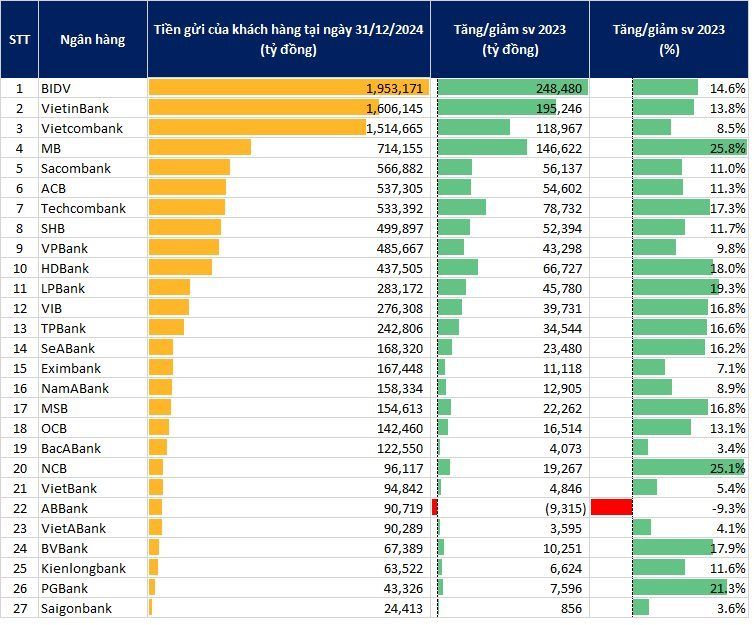 Việt Nam sắp có ngân hàng đầu tiên huy động được 2 triệu tỷ đồng tiền gửi khách hàng